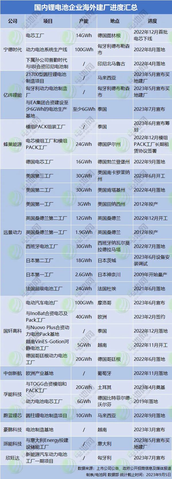 電池網(wǎng)注意到,目前,鋰電池依舊是新能源汽車的主流動(dòng)力電池技術(shù)路線,且從目前的產(chǎn)業(yè)發(fā)展形勢(shì)來看,在未來很長一段時(shí)間內(nèi)難以被顛覆。從國內(nèi)鋰電池企業(yè)海外建廠整體情況信息來看,我國鋰電池企業(yè)海外建廠數(shù)量已達(dá)30個(gè)(包含電芯、模組PACK工廠),其中,21個(gè)工廠公布了規(guī)劃產(chǎn)能,總計(jì)超過512.5GWh。從項(xiàng)目地點(diǎn)來看,統(tǒng)計(jì)在內(nèi)的30個(gè)海外項(xiàng)目中,19個(gè)為歐美地區(qū)。
