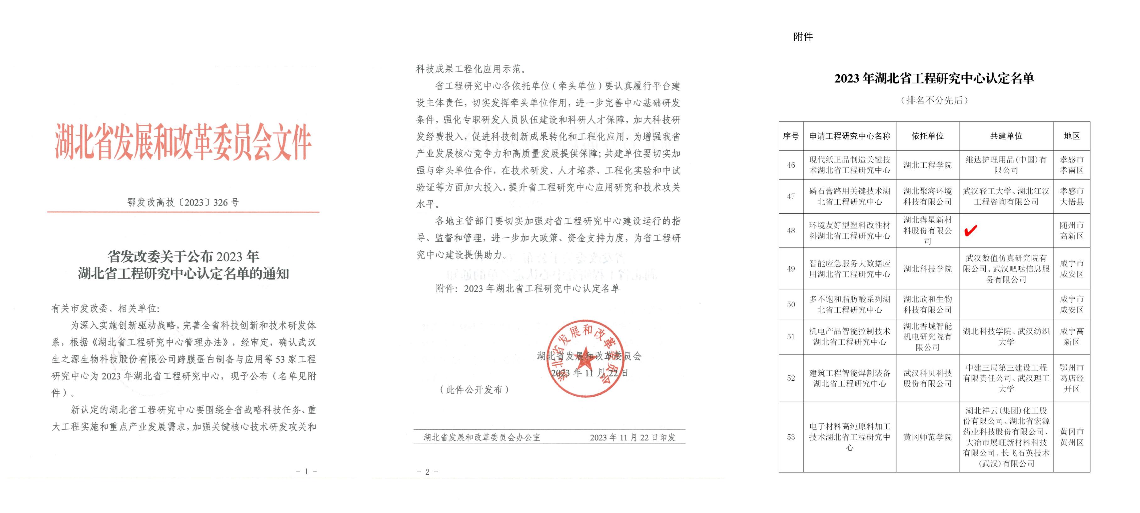 近日,湖北省發(fā)改委公布了2023年湖北省工程研究中心認(rèn)定名單(鄂發(fā)改高技【2023】326號(hào)),我司申報(bào)的“環(huán)境友好型塑料改性材料湖北省工程研究中心”正式獲批認(rèn)定,該工程中心是我司獲批的首個(gè)省級(jí)工程研究中心。